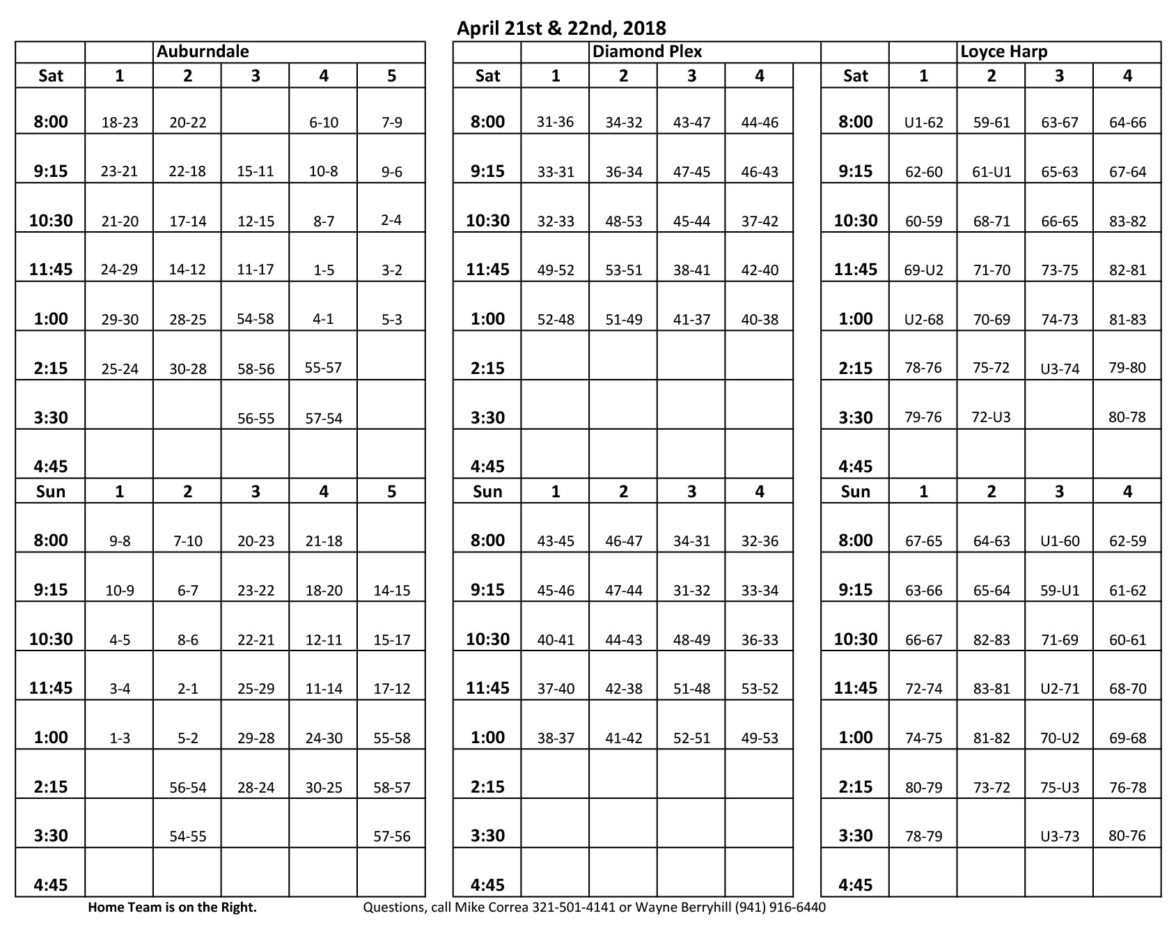 Questions about the tournament or facilities:
