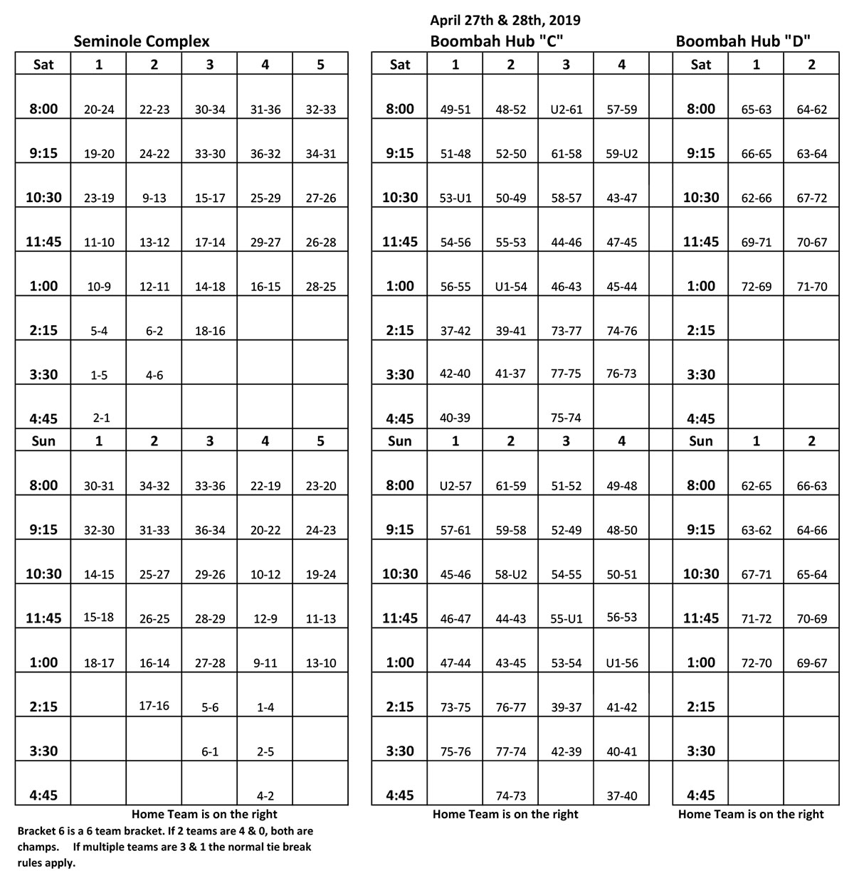 Tournament Locations: