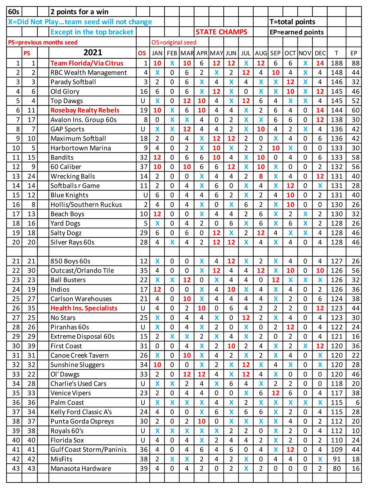 60+ Divisions 2021 Final Points