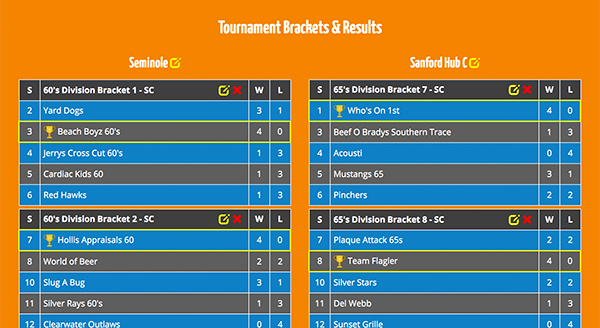 Florida Creative has added their new Brackets & Results module to the website, which will now allow players and coaches to quickly view their team's bracket opponents and the tournament results after the weekend of play. Just click on the 50's Division June 2017 tournaemnt or 60's Division July 2017 tournament to view this new feature.