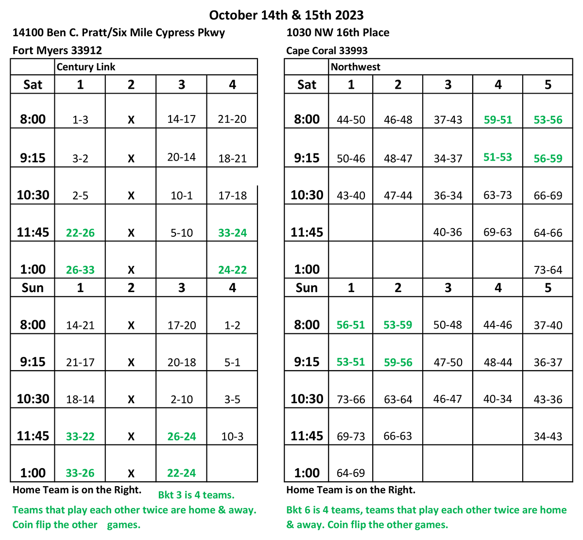 Tournament Locations: