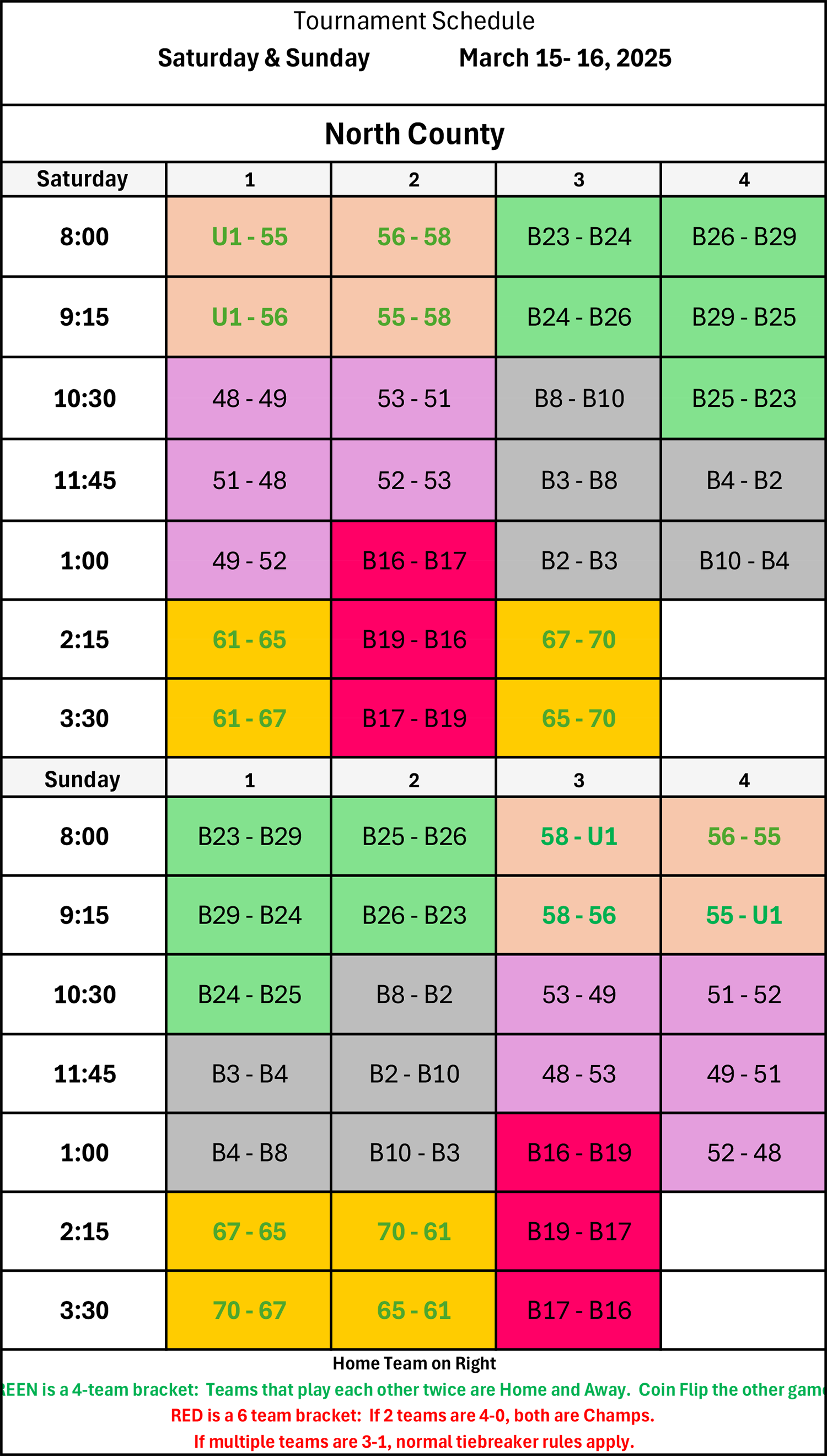 | 10:30 | 56 - 55 | B8 - B2 | B24 - B25 | B19 - B17 |