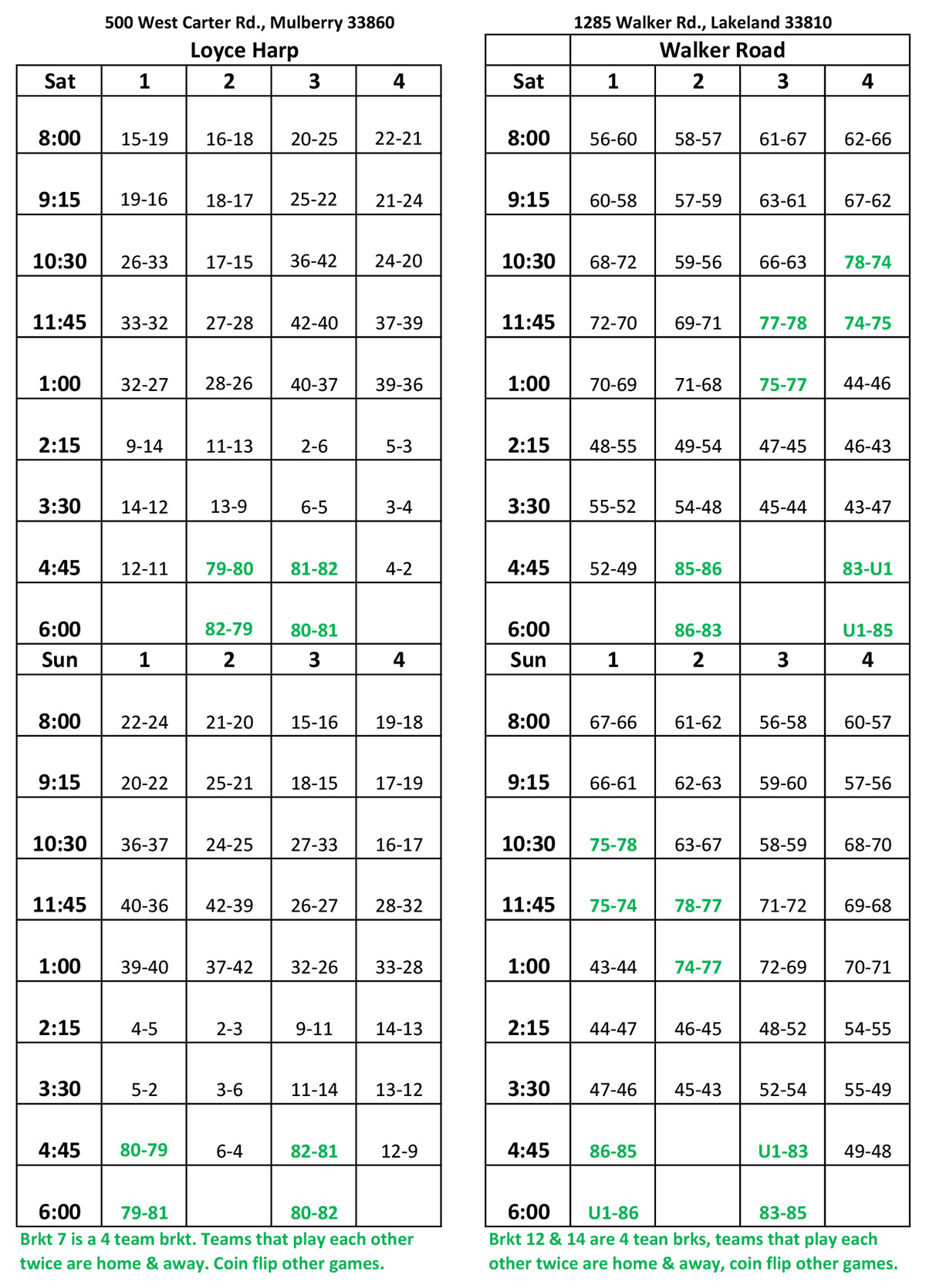 Tournament Locations: