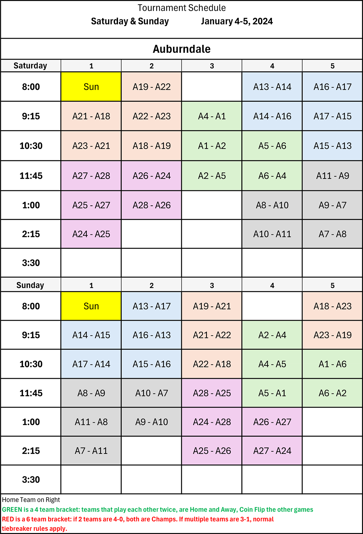| 8:00 | A13 - A17 | A6 - A2 | A5 - A1 | A18 - A23 | A19 - A21 |