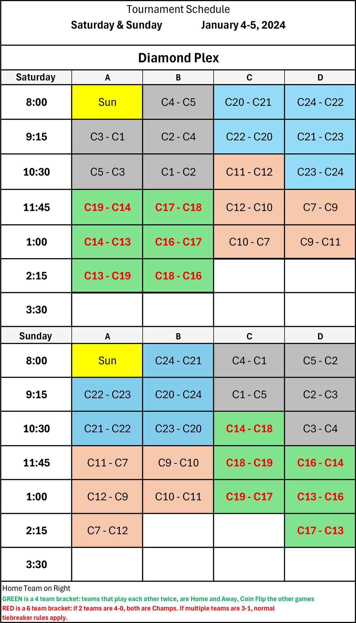 | 8:00 | C23 - C20 | C21 - C22 | C4 - C1 | C5 - C2 |