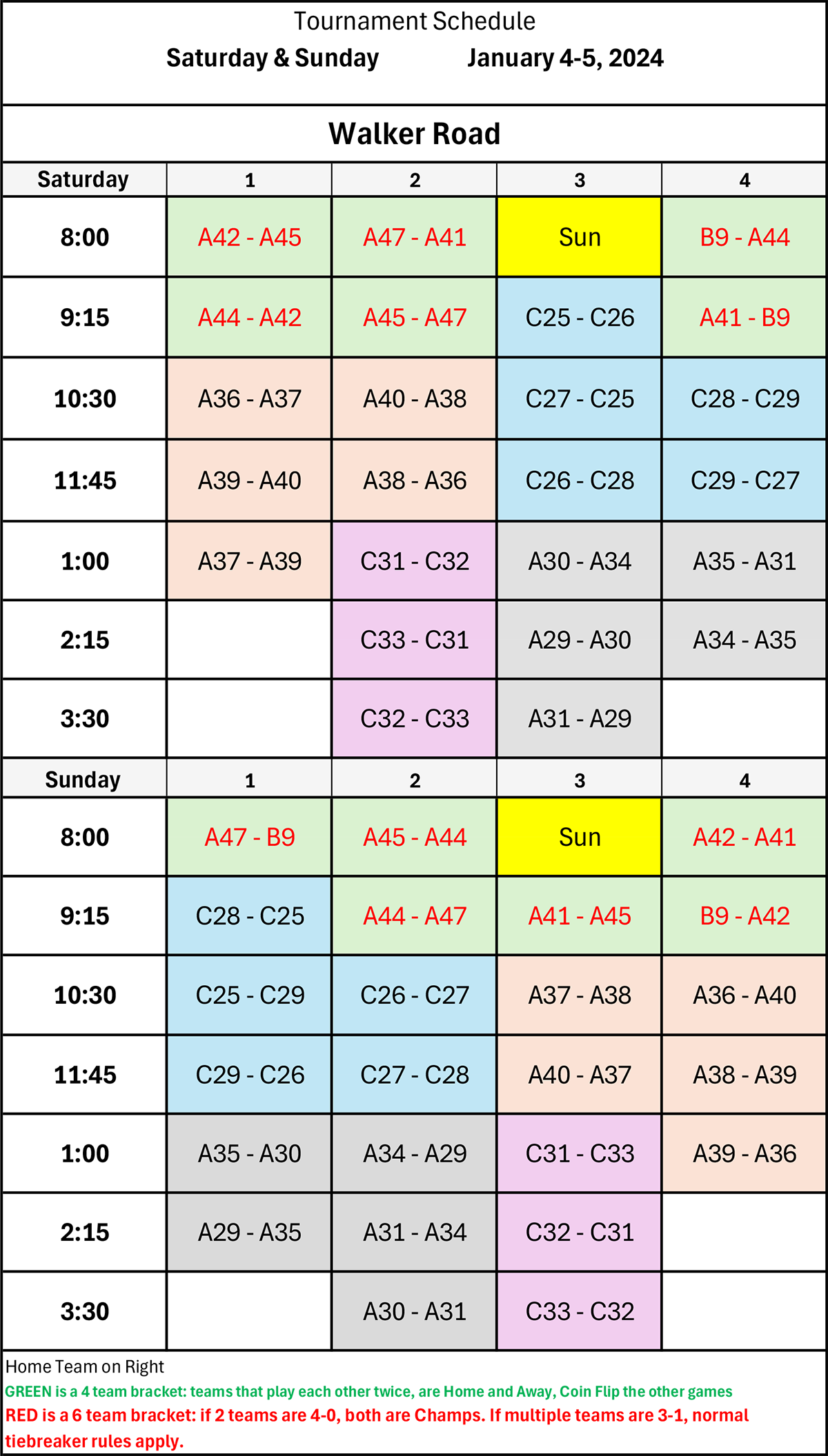 | 9:15 | A47 - A42 | C25 - C29 | C26 - C27 | C31 - C33 |