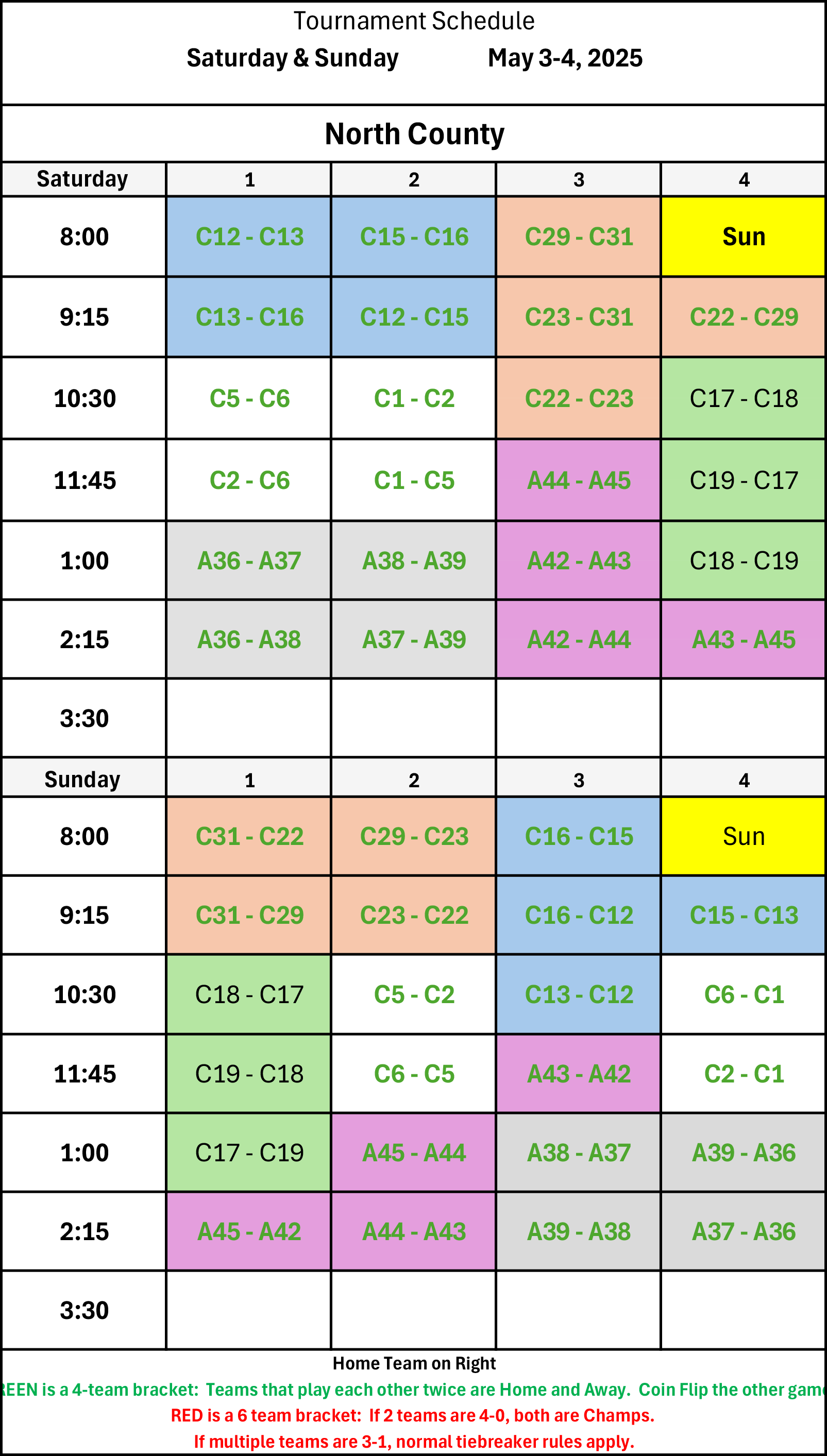 | 9:15 | C31 - C29 | C23 - C22 | A44 - A43 | A45 - A42 |