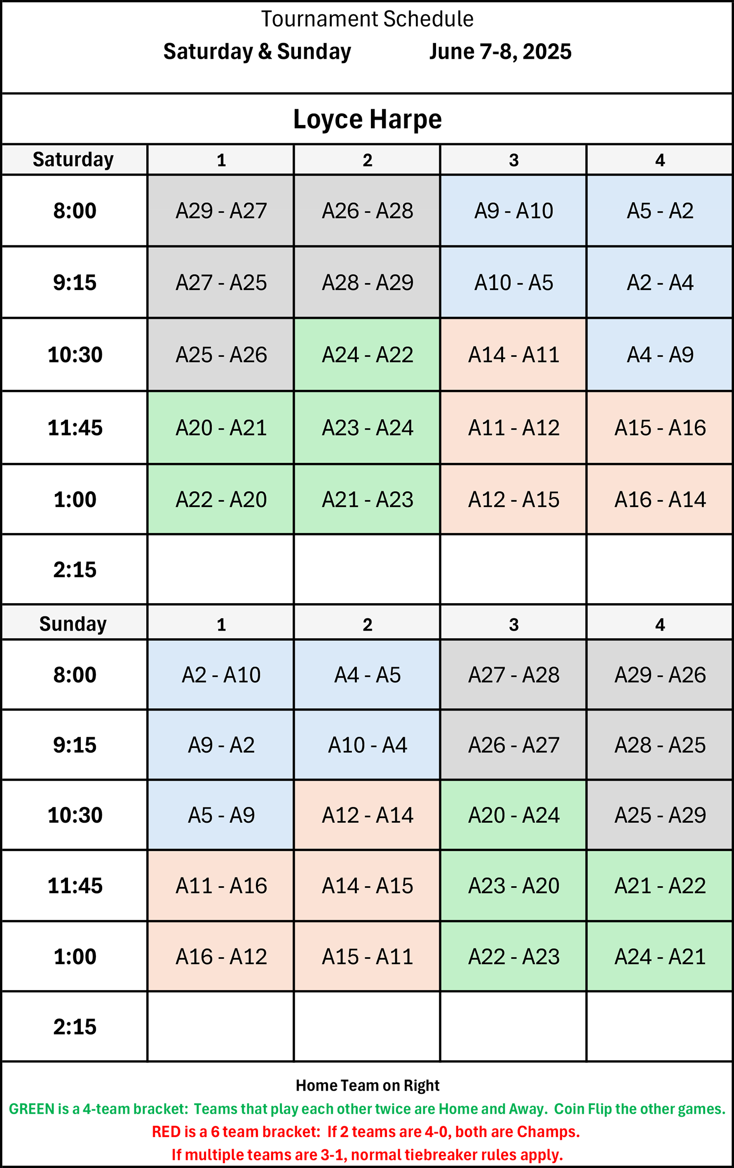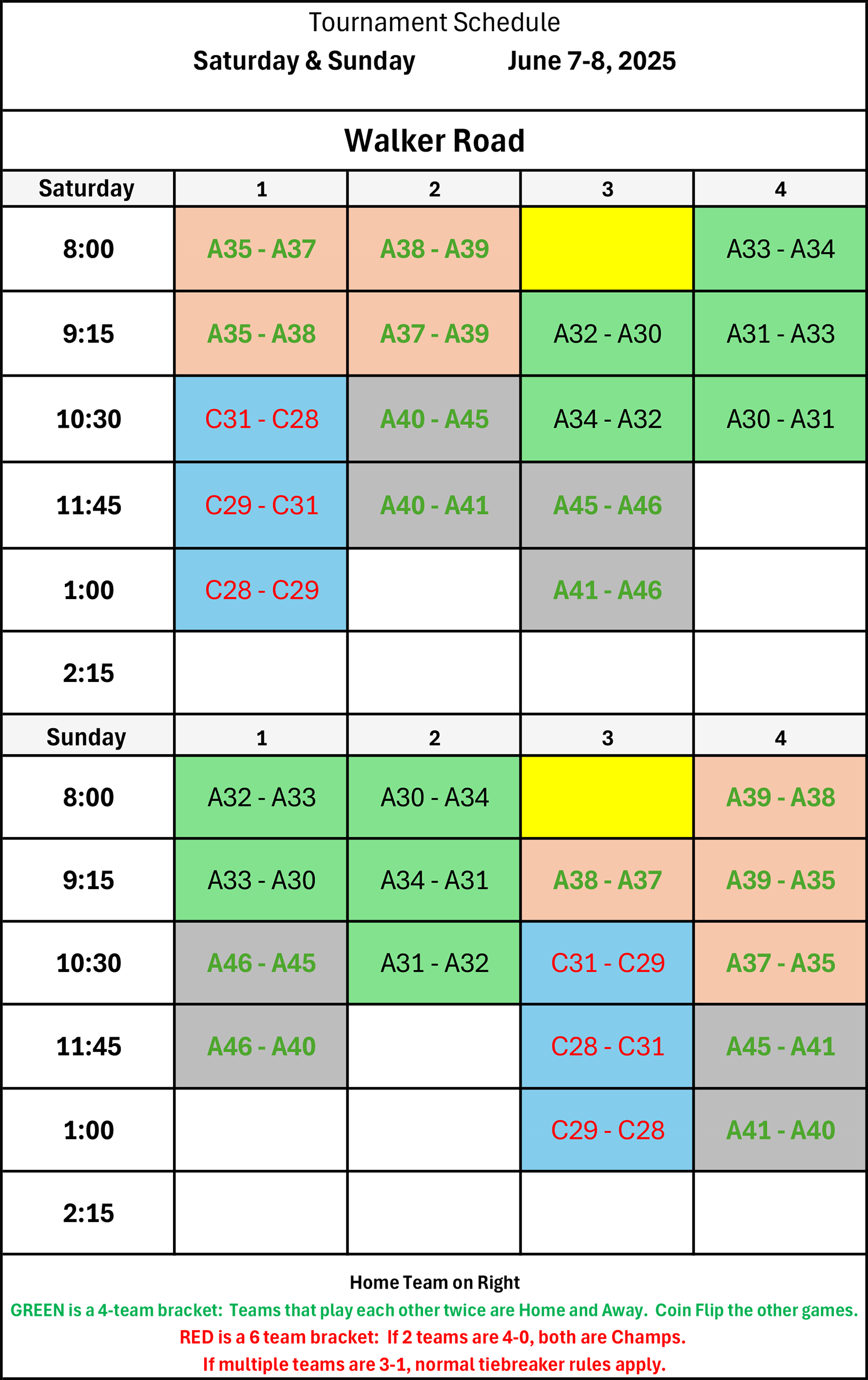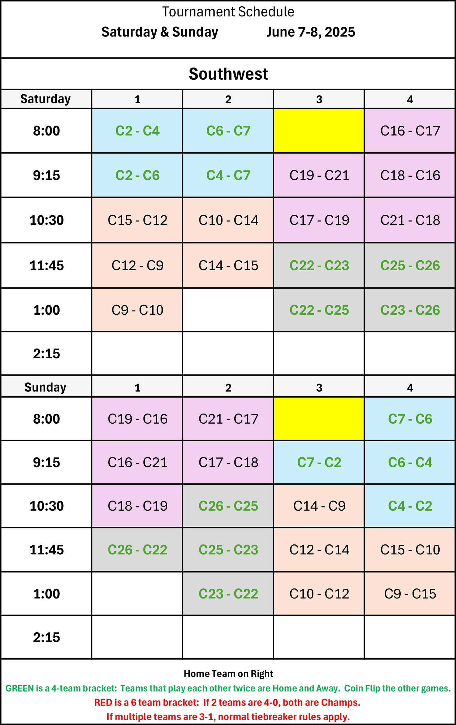 | 8:00 | C15 - C12 | C10 - C14 | Sun Field | C16 - C17 |