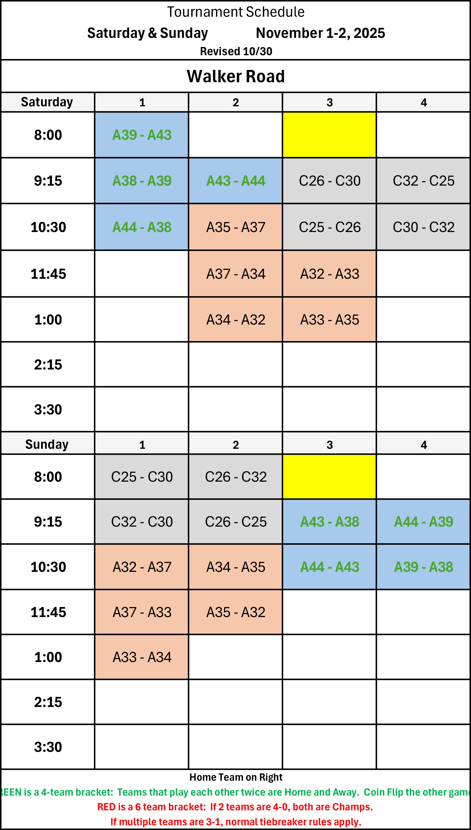 | 8:00 | A34 - A32 | A33 - A35 | Sun Field | C25 - C26 |
