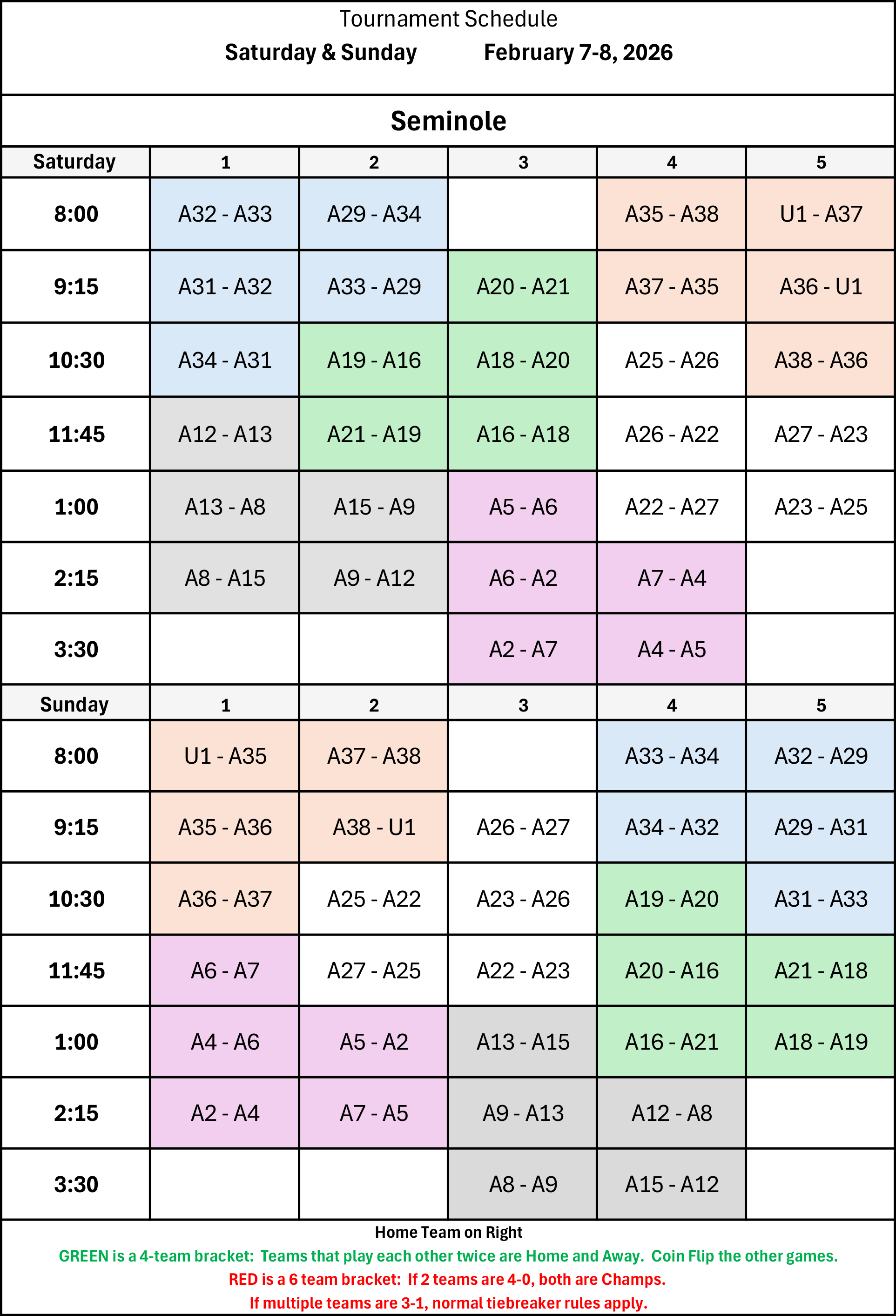 | 9:15 | A20 - A16 | A12 - A13 | A15 - A9 | A36 - U1 | A37 - A35 |