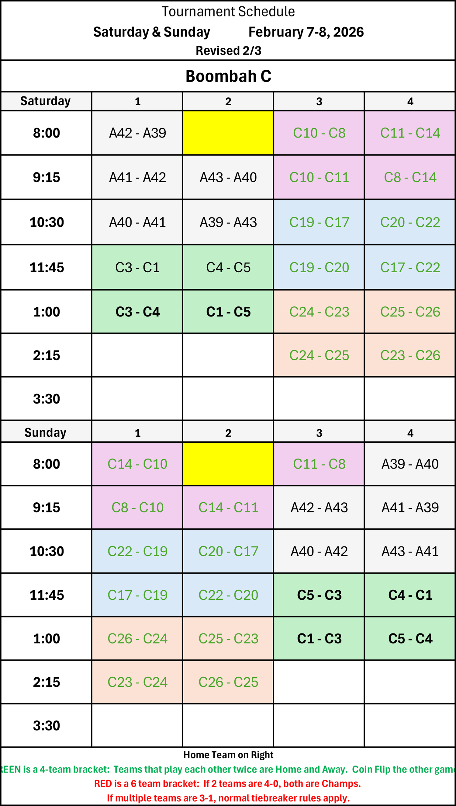 | 9:15 | C19 - C22 | C17 - C20 | C11 - C14 | C8 - C10 |